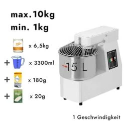 Teigknetmaschine – 22 Liter / 18 Kg – 1 Geschwindigkeit – Kessel Abnehmbar Und Rührwerk Aufklappbar